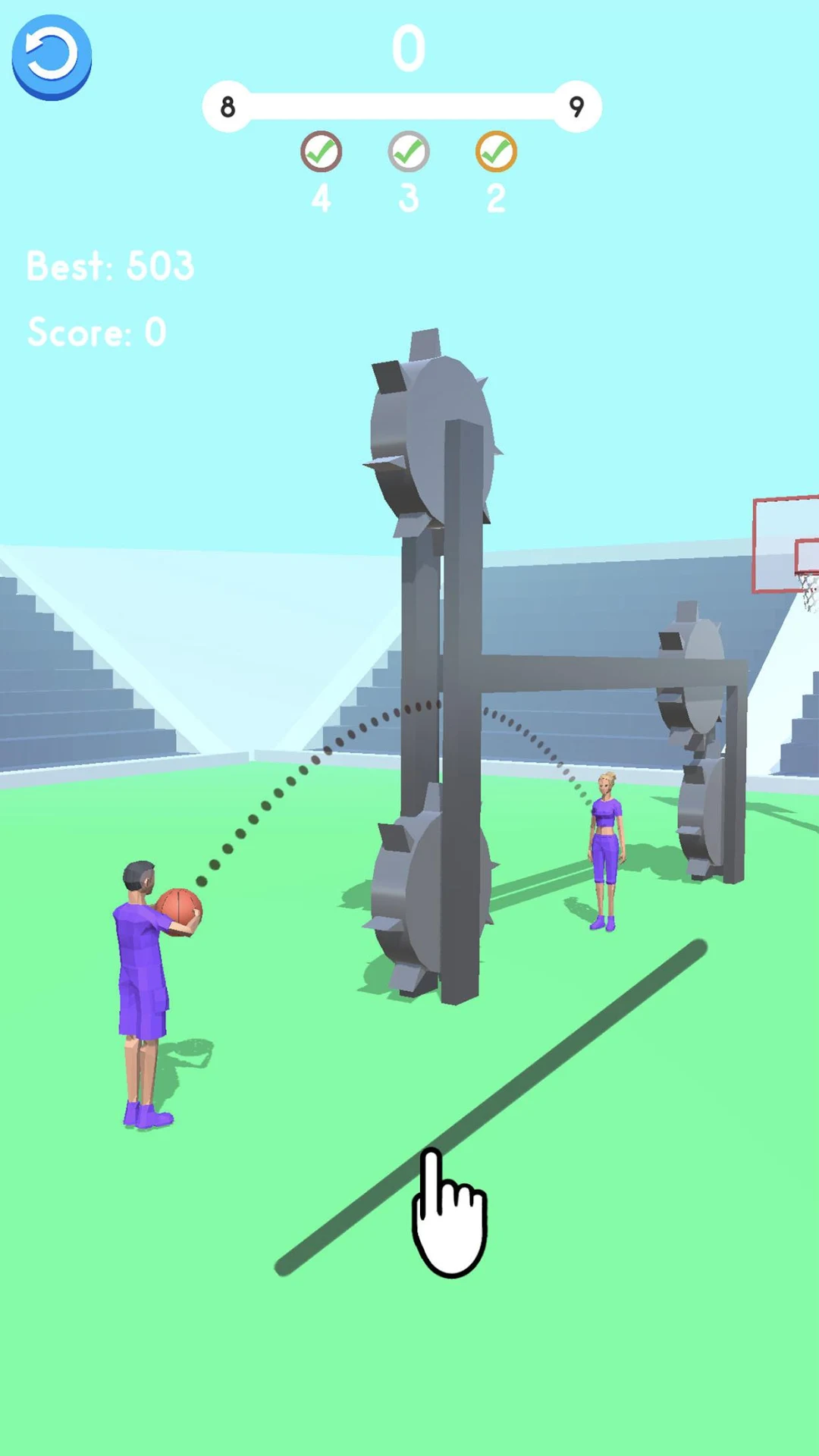 《传球大师》是一款以投篮为核心玩法的休闲竞技手游,游戏将篮球运动的传球技巧与趣味闯关完美结合。在这款游戏中,玩家需要化身球场上的传球高手,通过精准的抛物线投球将篮球传递给队友。游戏场景中设置了各种动态障碍物,比如移动的墙壁、旋转的风扇等,玩家需要灵活调整投球角度和力度来避开这些障碍。每次成功传球都能积累分数,连续精准传球还能触发连击奖励机制,让玩家获得加倍的游戏金币和特殊道具。