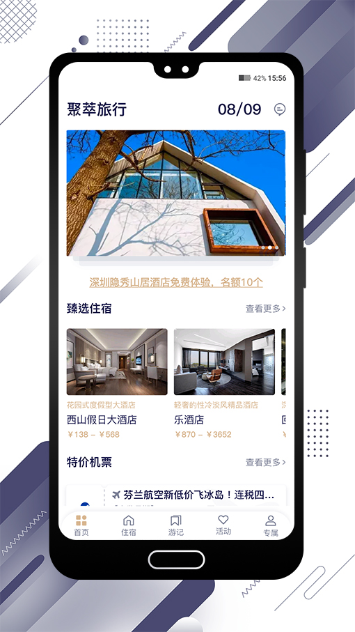 酒店:基于LBS定位技术,为用户智能推荐3公里范围内的高性价比住宿,涵盖从青旅到五星级的10万+家合作酒店,所有房源均通过严格卫生和安全认证