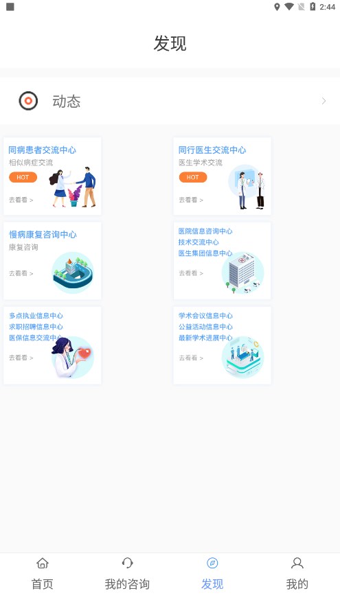 医院介绍:在寻医通app上有医院咨询中心,有人想要了解医院的情况可以进行介绍。包括医院特色科室、专家团队、医疗设备等详细信息,帮助患者做出更明智的就医选择。