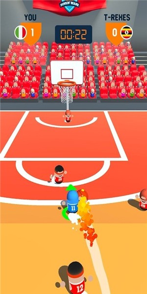 在《扣篮豆子人》中,玩家需要熟练掌握各种花式扣篮技巧,从基础的双手灌篮到高难度的360度旋转扣篮,每个动作都充满挑战性。游戏提供了丰富的特效和皮肤选择,让你的每次扣篮都与众不同。随着关卡推进,对手的防守会越来越严密,需要玩家不断提升操作技巧和反应速度。游戏还设置了多种特殊道具和技能,合理运用这些元素能让你在比赛中占据优势,体验更刺激的篮球对决。