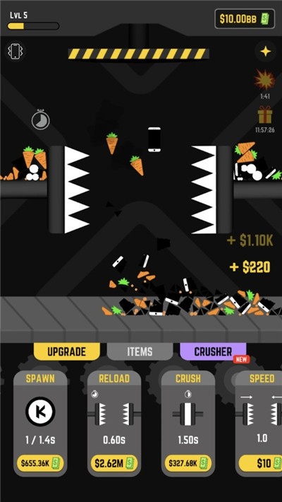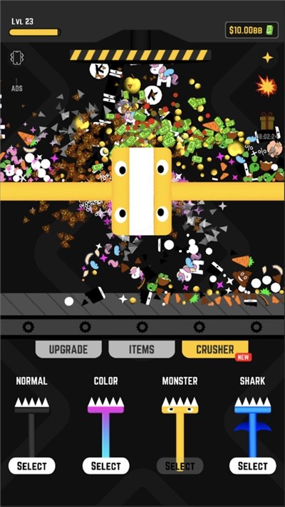 每一关都有不同的任务解锁,极简的操作玩法,控制碾压机进行粉碎。关卡设计独具匠心,从简单的单物品破坏到复杂的连锁破坏挑战应有尽有。