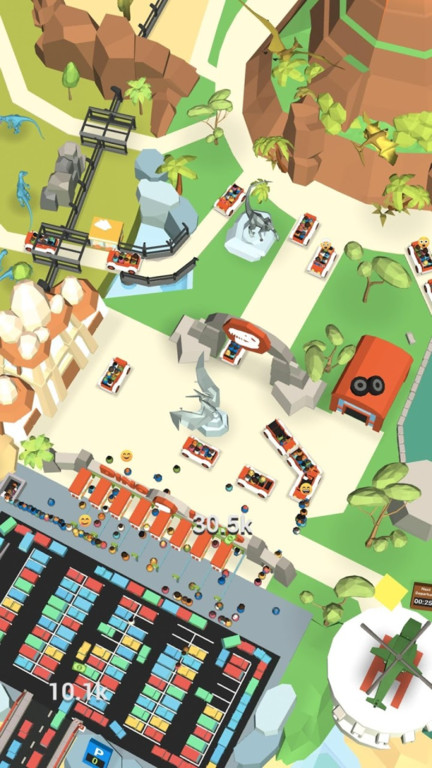 循序渐进的成长系统让玩家能够稳步发展。通过赚取金币可以解锁新的园区区域,逐步扩建你的恐龙帝国,最终打造出世界顶级的恐龙主题乐园。