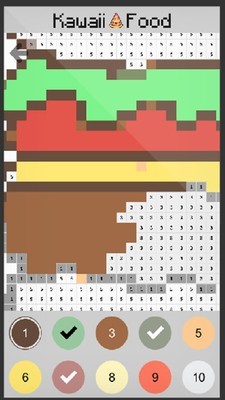 这款游戏以简单清新的像素艺术为核心玩法,让玩家通过填色方式还原各种诱人美食。游戏设计非常友好,即使完全没有绘画基础也能轻松上手,只需按照数字提示在对应方格填入相应颜色即可。虽然每个美食作品的色彩构成并不复杂,但精心设计的10种色彩组合足以创造出令人垂涎欲滴的视觉效果,让每道美食都独具特色。