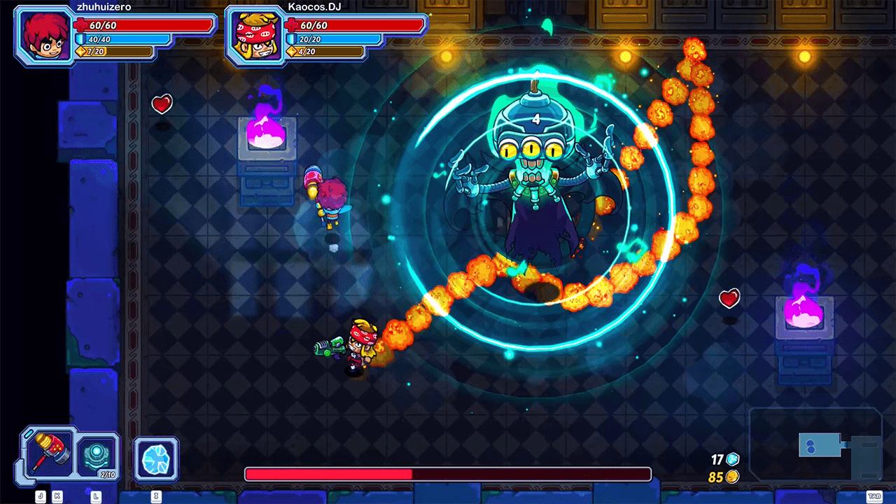 合作:游戏支持最多4人联机合作,玩家可以邀请好友一起挑战越来越强大的敌人。团队配合至关重要,不同角色的技能可以产生连锁反应,创造出惊人的战斗效果。但要注意,敌人也会随着玩家人数增加而变得更强,甚至召唤援军来对抗你们。