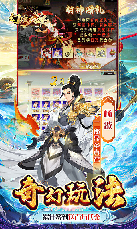 游戏为新手玩家准备了丰厚福利,创角登录即送顶级神将,还有专属神将自选卡助力开局。随着主线剧情推进,玩家将逐步解锁更多强力装备和稀有异兽。游戏中的杨戬、姜子牙、哪吒等经典角色都以全新形象登场,每个角色都拥有独特的技能和成长路线,玩家可以自由搭配组建最强阵容,体验策略对战的乐趣。
