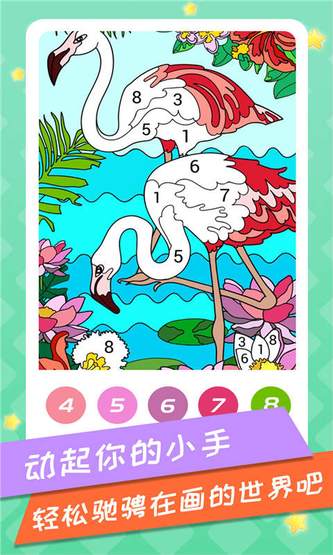在《你就是画家》中,玩家将面对各种可爱的动物和场景,需要为它们涂上丰富多彩的颜色,让原本单调的黑白画面焕发生机。游戏提供了丰富的调色板和多种画笔工具,玩家可以根据自己的喜好自由搭配色彩,创造出独特的艺术作品。核心玩法非常简单:只需按照数字提示,选择对应的颜色进行填充即可。这种直观的操作方式让玩家能够专注于享受绘画的乐趣,而不必担心复杂的技巧要求。