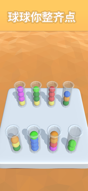 球球你整齐点是一款风靡全球的3D益智排序游戏,在谷歌Play商店和苹果App Store都获得了极高人气。这款游戏以色彩分类为核心玩法,玩家需要通过点击操作将不同颜色的小球分门别类地放入对应颜色的试管中。游戏采用关卡制设计,随着关卡推进,难度会逐渐提升,考验玩家的观察力和逻辑思维能力。轻松愉快的操作方式搭配清新明快的画面风格,让这款游戏成为休闲时光的绝佳选择。