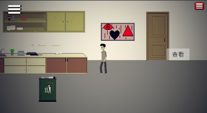 我因为想体验体验突然被吓的感觉,还有就是怕高能预警出来了,高能还没出来搞得自己不知所措,就没开预警,所以不太清楚是什么样的。*音效什么的,加上深色的背景,和那个黑敷敷的银儿,氛围有了。晚上那种模模糊糊看不清的感觉好评。我是觉得不错的。第一个黑夜我直接睡过去了,后面几个黑夜才动身探索。后来发觉,好像刚到黑夜的话没那么多音效和吓人的效果。只有自己睡了一会儿,看到黑敷敷的家伙出来,或者听到音效出来,后面才会有不同的事发生(也有可能是我记错了,玩的时候不是有计划性得玩的,所以这会儿重新整理自己玩过的内容可能就有点记不清)。想来这个设定我还蛮喜欢,就好像自己明明打算安安稳稳结束黑夜,却被突然而来的事物打断了,*让原先的氛围加深了一个层度。挺好。玩了一会发现,在睡觉时,如果不管那个黑敷敷的银儿让他靠近的话,男主就会死在梦里,玩家也就game over了。死后能继续游戏,不用重头开始就很好。除了这个时候他能杀男主,在其他地方,比如在电视里和在马桶里(hhhhh这么说莫名有点想笑)的时候都不会杀,只是吓吓……吧。不太确定,因为电视机那次我直接冲上去关了,马桶那次他倒是真的不会动手(人都卡马桶里了你还要他怎么动手hhhh咳咳,开个玩笑)。我不知道自己有没有触发所有的。*想获得道具,需要反复多次进入黑夜,这样给了我们更多探索的机会。场景内有些物品和剧情没什么关系,但也可以查看,这样就添了些猜测的空间。右侧的互动按键也很有帮助——黑夜里可以不用手电筒直接探索。那个按键只有到了真正能互动的地方才弹出来,新出现可互动物品时,还很良心地用亮点的颜色标出来了。这个是真的方便,找道具简单些。