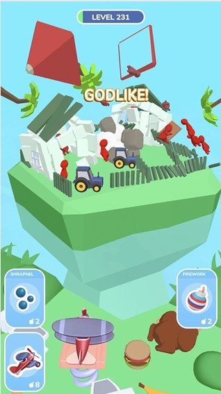 不断的去强化自己的实力,增加对敌人的攻击伤害,能够帮助你快速的完成闯关。游戏提供了完善的升级系统,玩家可以通过收集资源来提升武器威力。游戏的画风,小人躲在房间里的动作非常有趣。卡通风格的布娃娃角色会做出各种夸张搞笑的动作反应,为游戏增添了不少欢乐元素。细节刻画的很完美,摧毁时候的爆裂效果很有视觉冲击力。物理引擎模拟的破坏效果非常逼真,看着建筑在炮弹轰击下分崩离析的感觉相当解压。