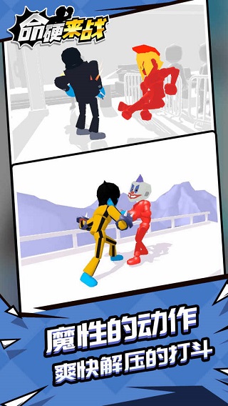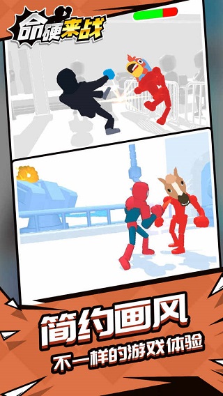 命硬来战官方版是一款充满趣味性和挑战性的休闲格斗类手游,它将带给玩家前所未有的战斗体验。在游戏中,玩家可以从众多风格迥异的角色中选择自己心仪的英雄,通过灵活的操作和精准的招式展开激烈的对战。游戏采用简单直观的操作方式,即使是初次接触格斗游戏的玩家也能快速上手,但要成为真正的格斗大师,还需要不断磨练技巧和战术。除了经典的对战模式外,命硬来战官方版还创新性地加入了图鉴收集系统,玩家可以通过战斗解锁各种炫酷的装备、服饰和道具,打造独一无二的战斗风格。游戏画面精美,打击感十足,配合动感的音效,让每一场战斗都充满激情。如果你正在寻找一款既能轻松上手又能带来持久乐趣的格斗游戏,命硬来战官方版绝对是你的不二之选,现在就快来下载体验吧。