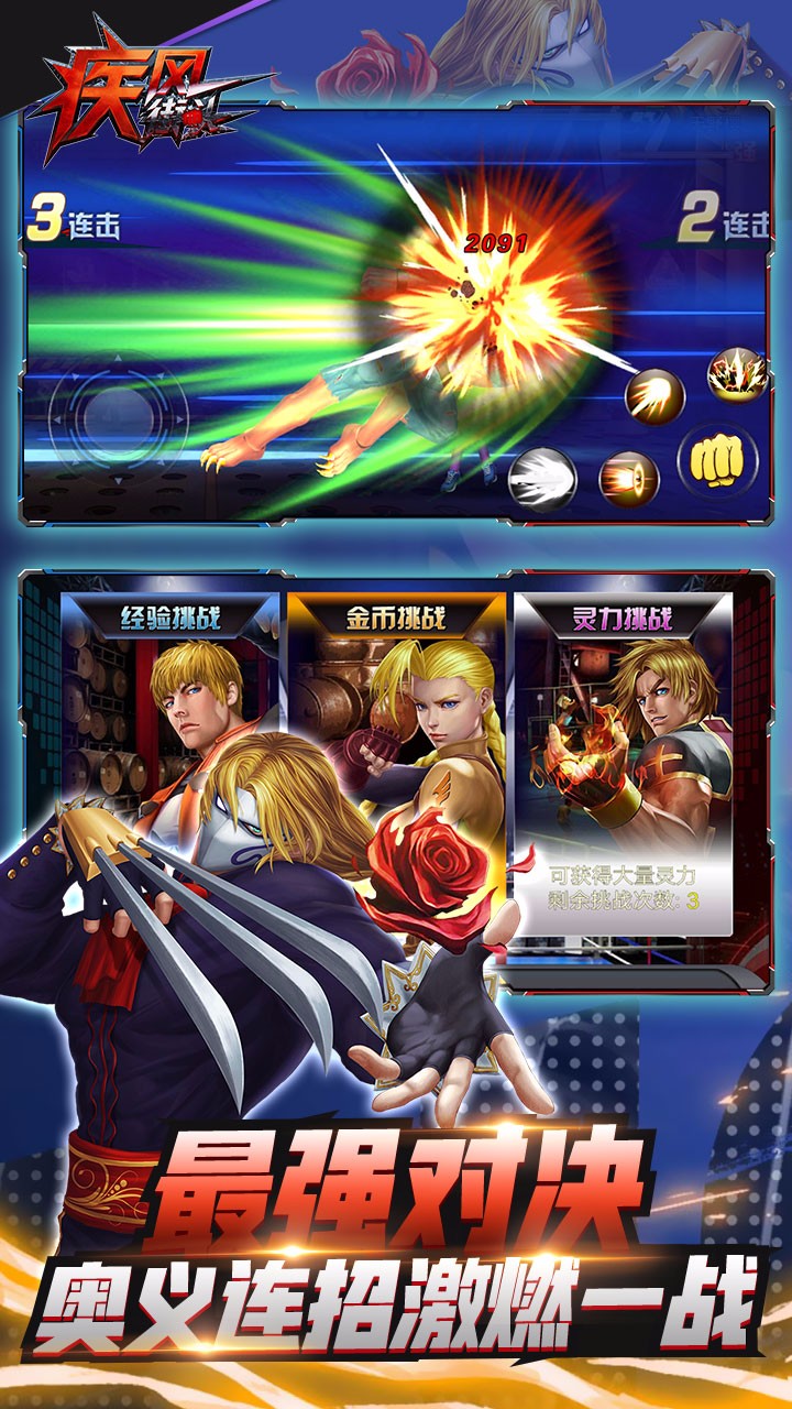 《疾风街头》是一款充满热血与激情的动作格斗手游,它将经典的街机格斗玩法与现代手游的创新元素完美融合,为玩家带来前所未有的战斗体验。在游戏中,你可以根据自己的喜好从众多风格迥异的强力角色中进行选择,组建属于你的专属战队。每个角色都拥有独特的技能和战斗风格,玩家需要根据不同的对战情况灵活调整出场顺序,制定最佳战术策略。除了紧张刺激的格斗对战外,游戏还提供了丰富多样的趣味玩法,让你在享受畅快打击感的同时,也能体验到策略与操作的完美结合。还在犹豫什么?赶快下载游戏,开启你的格斗之旅吧!