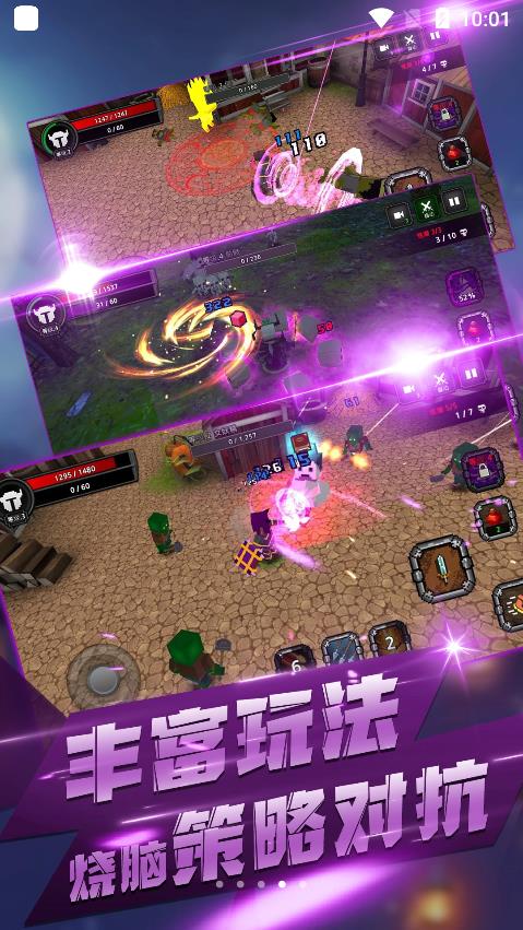 游戏中有十余名各具特色的角色轮番登场,每个角色都拥有独特的属性和成长路线。通过收集和合成方块,玩家可以逐步解锁这些角色。角色养成系统非常丰富,玩家可以根据自己的喜好培养专属英雄。此外,游戏还提供了多种精美的套装,如萨利套装、骷髅套装等,这些套装不仅能提升角色属性,还能改变外观,让你的英雄更加与众不同。