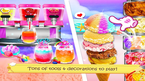 游戏提供了令人惊叹的素材库,包含数十种基础原料、二十余种水果配料和十多种糖果装饰,玩家可以尽情发挥创意进行组合。特别值得一提的是,游戏中的调色系统非常有趣,玩家可以通过混合不同色素,调配出彩虹般的绚丽色彩。当添加新鲜水果和彩色糖粒时,冰淇淋会立即变得生动诱人,逼真的视觉效果让人忍不住想尝一口。
