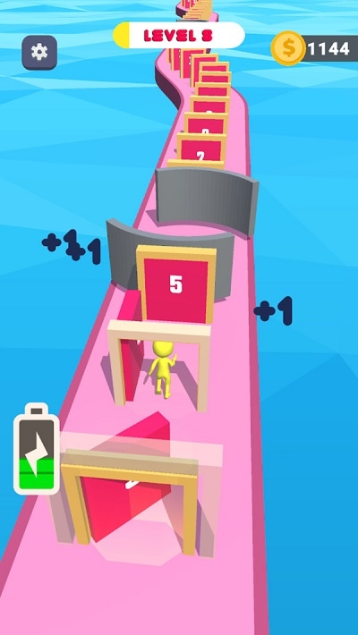 游戏的核心机制围绕着"破门决策"展开。玩家需要评估每扇门上的数字与当前体力值的关系,选择最合适的突破时机。当遇到无法安全通过的门时,勇敢的橡皮人会全力冲刺,这时会触发震撼的破碎特效。体力管理系统极具策略性,玩家需要在冒险突破与保留体力之间找到平衡。上帝视角让玩家能俯瞰整段赛道,这种独特的视角设计既方便规划路线,又不会影响操作的流畅性。游戏还设置了多种特殊道具,如体力恢复药水、临时护盾等,为闯关过程增添更多可能性。