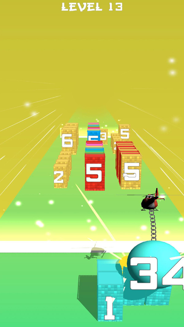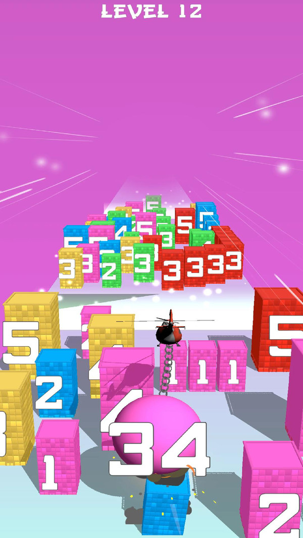 玩家需要通过触屏操作来精准控制直升机的移动方向。游戏中设置了独特的彩色球球破坏系统,您需要操控直升机带动彩色球球撞击相同颜色的砖块,这对玩家的反应速度和操作精准度提出了极高要求。游戏支持多点触控,让您的手指可以灵活地在屏幕上滑动,体验行云流水般的操控快感。