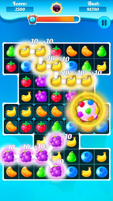 游戏以各种新鲜水果和蔬菜为主题,画面甜美可爱,特别受到女性玩家的青睐。基础玩法简单易懂,只需连接两个或更多相同水果即可完成消除。游戏关卡设计独具匠心,每个关卡都有独特的挑战目标。超过1000个精心设计的关卡等待玩家挑战,保证游戏内容足够丰富。游戏完美适配各种移动设备,无论是手机还是平板电脑都能获得最佳的游戏体验。此外,游戏还会定期更新,持续为玩家带来新鲜有趣的游戏内容。