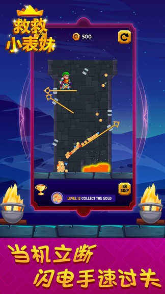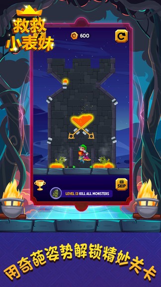救救小表妹游戏安卓版是一款充满挑战与趣味的密室逃脱类游戏。在游戏中,玩家将扮演一位勇敢的冒险者,帮助被困在危险密室中的小表妹脱离险境。每个关卡都设计了独特的机关陷阱,从凶猛的野兽到熊熊烈火,玩家需要通过智慧与策略拉动机关,做出关键选择。游戏不仅考验玩家的反应能力,更注重逻辑思维与解谜技巧。随着关卡推进,难度逐渐提升,带来持续的新鲜感与成就感。此外,游戏还融入了建造玩法,让冒险之旅更加丰富多彩。现在就加入这场惊险刺激的救援行动吧!