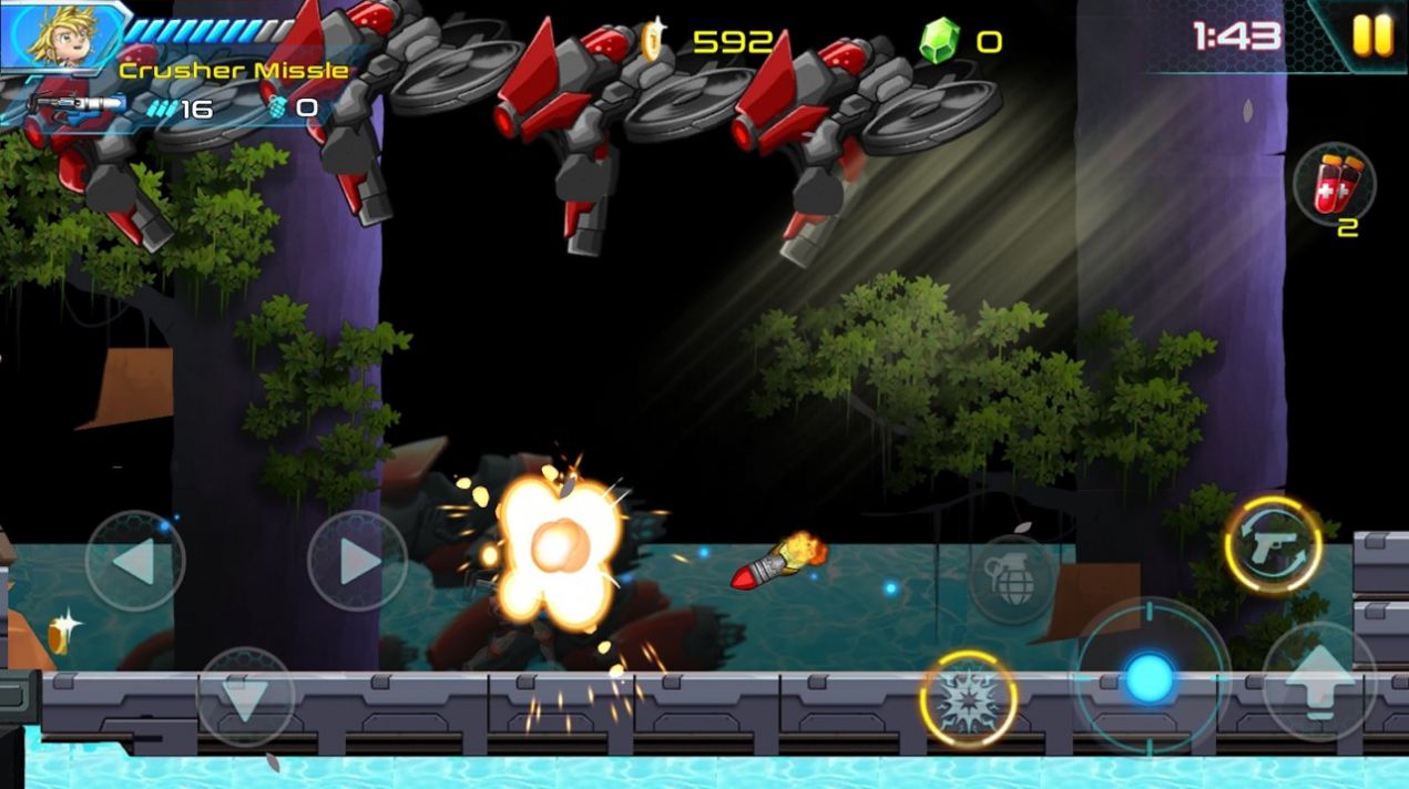 《金属射手之翼》的最大亮点在于其丰富的武器系统和逼真的战斗效果。游戏中提供了多种外观炫酷、性能各异的武器,满足不同玩家的喜好。操作方面,游戏采用了直观的控制方式,玩家可以通过虚拟摇杆移动角色,点击跳跃按钮躲避障碍,并使用射击和手榴弹按钮发动攻击。游戏中的爆炸效果和战斗音效都经过精心设计,为玩家带来沉浸式的战斗体验。此外,游戏还支持多人联机模式,让您与好友一起挑战更高难度的关卡。