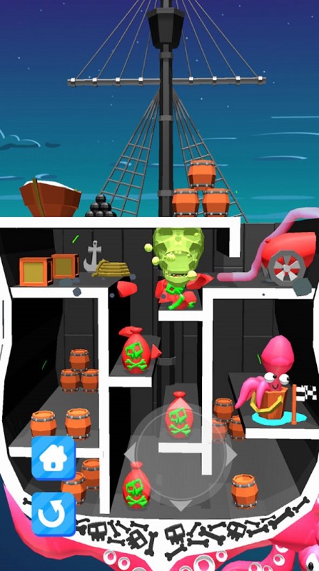 扬帆起航,在大海上看到八爪鱼之后要将他们消灭,彼此吸附在船只上,需要您发动自己的才智消灭它们。游戏中的敌人AI设计巧妙,玩家需要运用策略才能成功击败它们。
