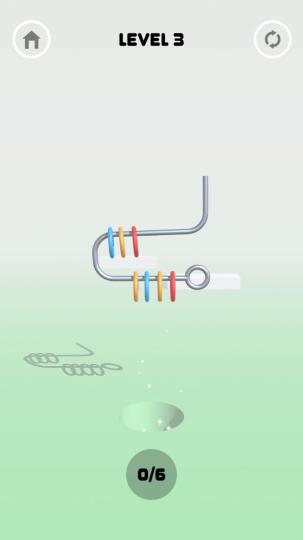 游戏采用简约清新的美术风格,每个金属环都经过精心设计。虽然大小统一,但多彩的颜色搭配让视觉效果更加丰富。不同颜色的金属环在碰撞时会产生独特的视觉效果,增加了游戏的观赏性。铁丝形状的多样性是游戏的核心特色,从简单直线到复杂螺旋应有尽有。随着关卡推进,铁丝的弯曲程度会越来越夸张,为玩家带来持续的新鲜感和挑战性。游戏还支持自定义关卡编辑功能,让玩家可以创造属于自己的挑战。