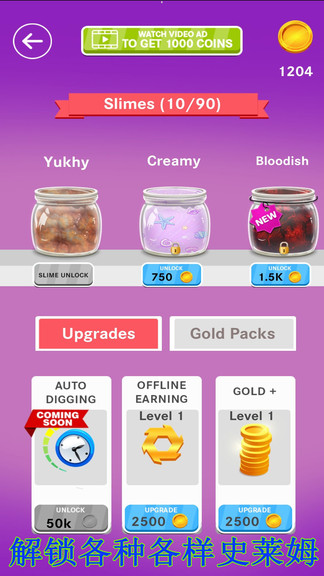 解锁各种各样的史莱姆:游戏提供数十种不同质地和特性的史莱姆,从闪亮的金属质感到蓬松的泡沫质感,应有尽有。