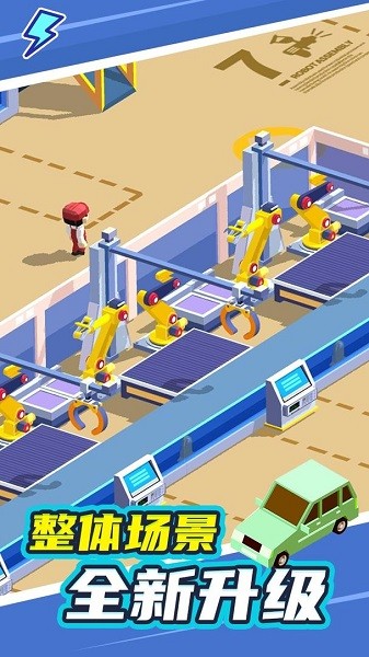 建立一个无尽的帝国,随时随地的雇佣新的工人;通过各种方式例如不同的厂商来制造相应的汽车零件,并且全面升级工厂来扩大自己的业务水准。随着工厂等级的提升,可以解锁更多高级功能,如自动化生产线、智能仓储系统等。