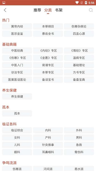 各个典籍的分区非常详细,发布查找,支持多种检索方式,可按病症、药材、作者等多维度进行精准搜索;