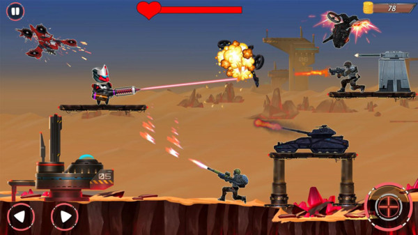 战场上的敌人种类繁多,从普通的武装士兵到悬浮在空中的战斗机器人,都会对你发起猛烈的进攻。你需要善用关卡中的各种掩体,在保护自己的同时寻找反击的机会。随着游戏的推进,你将逐步解锁更多高科技武器,比如能够穿透多个目标的激光枪,以及可以释放电磁脉冲的特殊装备。