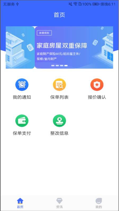 我的通知、保单列表、报价确认。首页集成了常用功能入口,支持消息实时推送,让用户第一时间掌握重要业务动态。