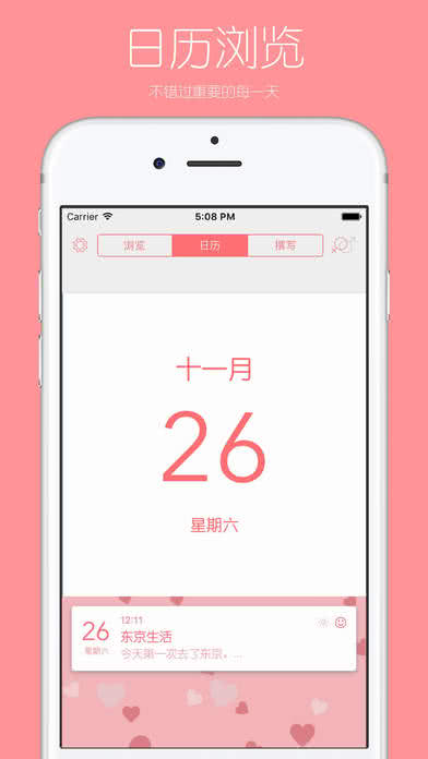 -新增月份的显示功能,日记按照月份智能分组,让时间脉络更加清晰可循。新增「时间戳」功能可以精准捕捉记录瞬间,而日记密码冷却时间的设置则进一步增强了隐私保护。全新的启动动画取代了原本单调的白屏,树洞功能的加入让用户多了一个倾诉心声的私密空间。完整日历视图的引入使得整体浏览体验更加系统化。
