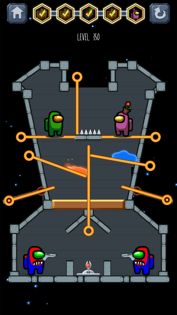 在太空拉针解谜中,玩家需要按照特定顺序拉动机关针,同时仔细观察场景中的每一个细节。游戏强调策略性思考,玩家必须分析每个动作可能带来的连锁反应,找出最优解。关卡中隐藏着各种致命陷阱,如滚烫的岩浆、锋利的弓箭和尖锐的钉子,稍有不慎就会导致任务失败。游戏特别设计了内鬼识别系统,这些伪装者会表现出异常行为,玩家需要通过细微观察来发现破绽。随着游戏深入,关卡设计会越来越精妙,需要玩家综合运用逻辑推理和空间想象能力才能顺利通关。