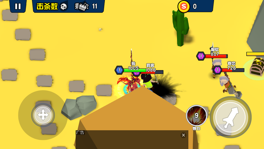 游戏采用独特的方块人美术风格,提供数十种角色造型选择,多人对战模式让你欲罢不能。通过虚拟摇杆实现精准走位控制,配合武器攻击键施展连招击败对手。自由搭配武器和技能系统,在随机生成的多样化场景中展开激烈厮杀。每次升级都会获得随机技能强化,上百种技能组合让每局游戏都充满变数。击败敌人可获得积分和金币奖励,用于解锁新角色和购买装备。特别加入的天气系统和昼夜变化,为战场增添了更多战术可能性。