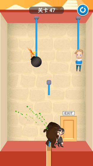游戏的核心玩法是通过割断绳子来引导小宝宝安全到达目的地,但过程中需要避开房间中的野兽和障碍物。每个关卡都设置了独特的机关和陷阱,玩家必须灵活应对,找到最佳的解决方案。游戏操作简单直观,只需滑动屏幕即可完成割绳动作,但要想完美通关,则需要精准的判断力和快速的反应能力。随着关卡的推进,房间的布局会变得更加复杂,玩家需要运用更多的技巧和策略,比如利用反弹、重力变化等物理特性,才能顺利过关。