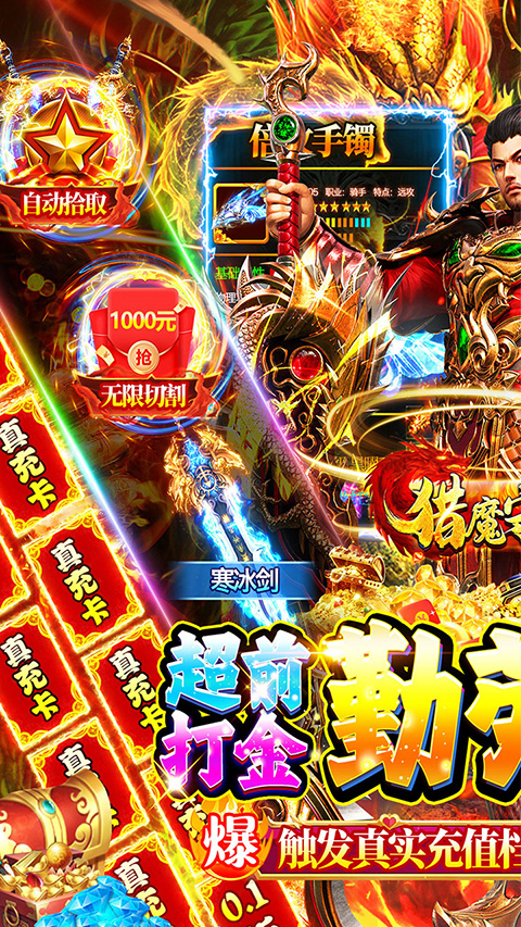 猎魔守护者(狂秒无限刀刷充)是一款充满激情与挑战的玄幻MMO大作,在这里你将体验到前所未有的传奇冒险。游戏为每位玩家准备了丰厚的上线豪礼,包括全新超变无限刀、自动拾取、刀刀冰冻、自动回收等强力功能,全部免费解锁!所有装备均可通过战斗获取,无需氪金也能畅享极致乐趣,真正实现"打宝自由"。独特的"勤劳致富"系统让你每日轻松积累充值点,兑换商城所有道具;"零元礼包"双倍返还机制更是福利满满,配合自动巡航、全屏吸怪等便捷功能,助你快速从萌新成长为一方霸主!