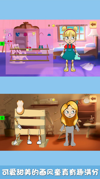 游戏最具特色的玩法之一是木偶装扮系统。孩子们需要通过拖动木偶的各个部位,将它们与给定的轮廓相匹配,创造出独具特色的木偶形象。完成造型后,还可以为木偶进行各种时尚装扮,打造专属的个性造型。