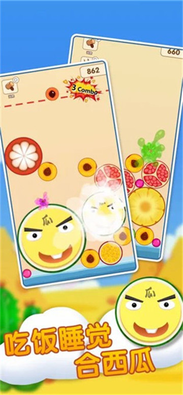 一起来吃瓜正版是一款充满夏日风情的休闲消除游戏,游戏以各种新鲜多汁的瓜果为主题,画面清新明亮,玩法简单有趣。在游戏中,玩家需要通过合成相同的水果来完成消除挑战,操作简单易上手,无论是老人还是孩子都能轻松享受游戏的乐趣。游戏中的水果种类丰富,从西瓜到哈密瓜应有尽有,色彩缤纷的水果搭配清爽的背景音乐,让人仿佛置身于夏日果园之中。