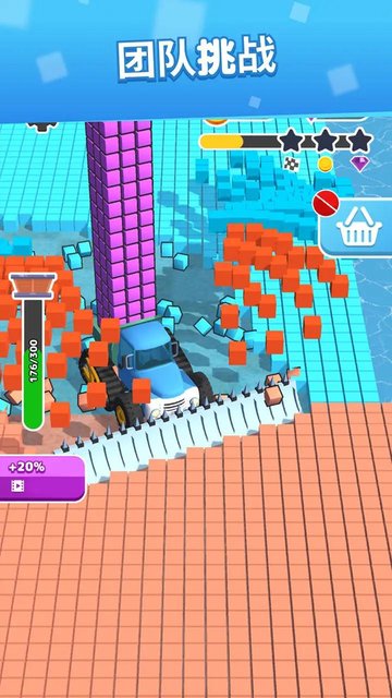 游戏最大的特色在于其创新的切割玩法,玩家需要开动脑筋寻找不同的切割角度和方法,合理运用各种特殊道具,才能高效地将方块一分为二。每个关卡都设有严格的时间限制,玩家必须在倒计时结束前将所有目标方块完美切割,这样才能获得三星评价。操作方面,玩家需要精准控制角色移动,通过巧妙的走位找到最佳攻击位置,将建筑物彻底摧毁。随着游戏进程推进,建筑物的摆放位置会越来越刁钻,需要玩家不断提升操作技巧。