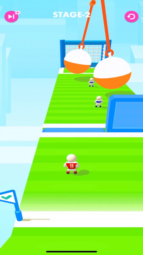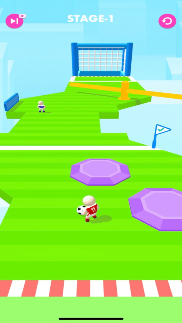 游戏最显著的特点在于其独特的球门设计系统。每个关卡中,球门与小人始终保持着面对面的位置关系,但两者之间的距离会随着关卡变化而调整。玩家需要精准控制踢球力度和角度,才能将脚下的足球准确射入球门。值得一提的是,游戏初期球门设计得特别宽大,这大大提高了新手玩家的进球成功率,让每个人都能快速上手并享受进球的成就感。