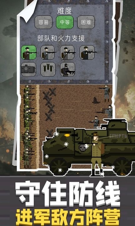 战地荣耀风云手游最新版是一款极具策略性与操作性的像素风格枪战手游,游戏采用独特的复古像素画风,搭配现代化的战斗系统,为玩家带来前所未有的战争体验。游戏中设计了数十种风格迥异的战场场景,从城市废墟到荒野沙漠,从雪地要塞到热带丛林,每个场景都暗藏战术玄机。玩家可以自由搭配上百种武器装备,从经典步枪到未来科技武器应有尽有,还能通过战斗不断解锁新装备。游戏最吸引人的是军团系统,玩家需要招募并培养各具特色的士兵,组建属于自己的无敌军团。