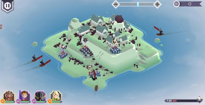 每场游戏的开局你将获得两支民兵队伍,接着在摊开的岛屿地图上选择下个战场。这种roguelike式的选择机制增加了游戏的策略性。岛上将会显示对手的兵种以即可获得的额外奖励,让你能够提前制定战术。