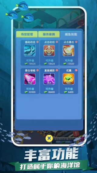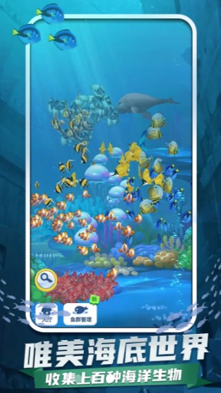 游戏最吸引人的特色之一就是丰富的收集系统。玩家可以收集上千种形态各异的海洋生物,每种鱼都有专属的图鉴记录,完成收集将获得满满的成就感。创新的融合玩法让游戏更具深度,通过将收集到的宝石与鱼类结合,可以触发神奇的进化过程。您可以像经营真实水族馆一样,精心照料自己喜爱的鱼类,见证它们从幼体到成体的成长历程。最令人惊叹的是进化系统,每次进化都会让鱼类展现出全新的外观和能力,带来持续的新鲜感。