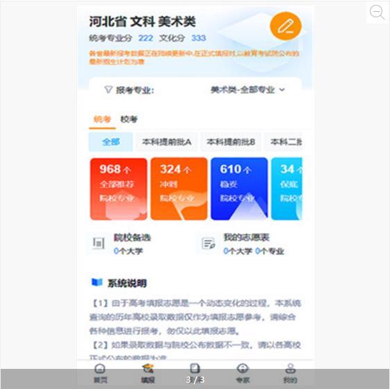 艺考志愿填报是一款专为艺术类考生打造的志愿填报辅助软件,致力于帮助考生和家长解决艺考志愿填报中的各种难题。软件每天都会实时更新全国各大院校的艺术类录取信息,包括招生计划、录取分数线、专业要求等关键数据。用户只需输入自己的考试成绩,系统就会根据分数情况智能划分可报考院校范围,并提供专业建议,让考生能够快速筛选出最适合自己的志愿选项。