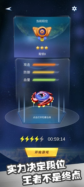 这是一款令人欲罢不能的陀螺竞技手游,采用创新的双人实时匹配系统。玩家需要精准控制陀螺走位,在恰当的时机释放强力技能。游戏设有完善的段位晋升机制,从青铜到王者共分十个段位,每个段位都设有专属奖励。独特的物理碰撞系统让每次对决都充满变数,快来展现你的操作技巧,向王者宝座发起冲击吧!