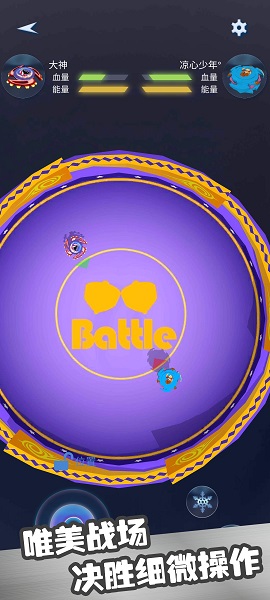操控你的陀螺,躲避敌人攻击。游戏采用创新的双摇杆操控系统,左手控制移动,右手释放技能,操作手感流畅精准。