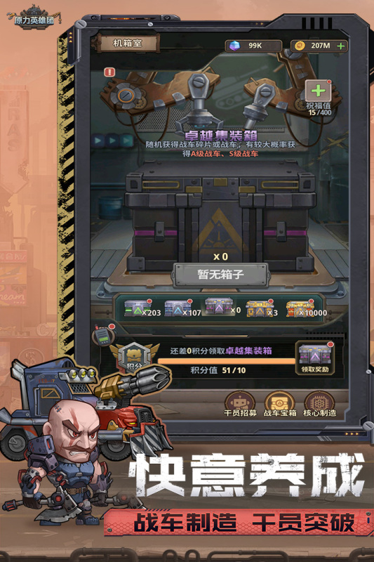 战车:作为一名英雄团的成员,你将驾驶战车,探索各种危险的地区。通过布置战车的位置和选择合适的技能,击败敌人并保护自己的资源。战车的改装和升级同样重要,不同的战车配置可以应对不同的战斗场景。