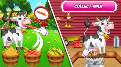 游戏拥有庞大的动物收集系统,除了基础奶牛外,玩家还能通过任务获得珍稀品种,如高原牦牛、荷兰乳牛等,每种动物都有独特的饲养要求和产出特性。精心设计的成长系统让每只动物都充满个性,从幼崽到成年,你将见证它们成长的每个精彩瞬间。