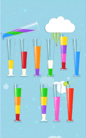 游戏中的试管采用宽口设计,让果汁倾倒过程更加流畅自然,大大提升了操作手感。分类机制独具匠心,不仅要求将同色果汁归集,还需要考虑液体叠加的顺序策略。系统会贴心地提供备用空试管,帮助玩家实施各种分流方案。独特的物理引擎让果汁倾倒过程真实生动,不同颜色的液体混合时会产生绚丽的渐变效果。随着关卡推进,还会解锁特殊道具和限时挑战模式,让经典玩法焕发新意。