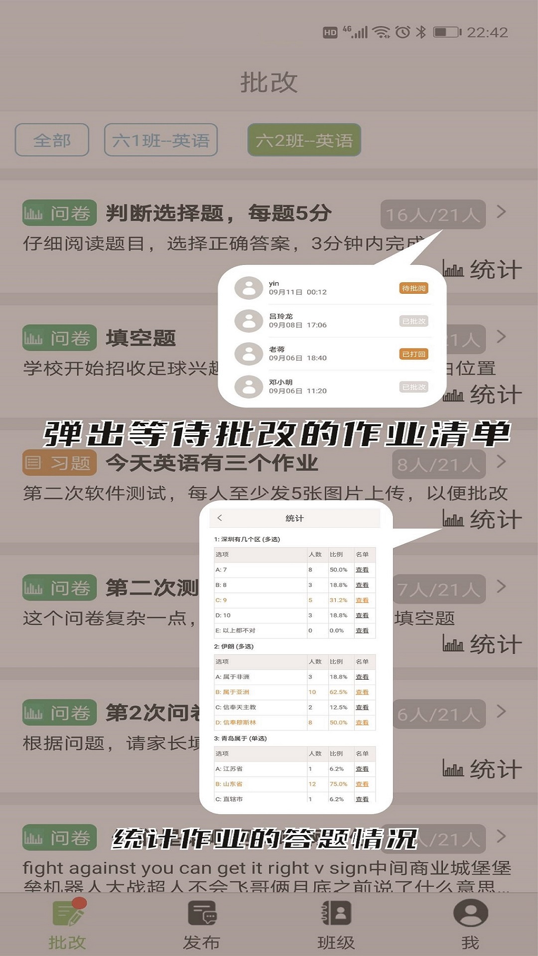 弹出等待批改的作业,智能提醒教师及时处理,避免遗漏任何一份作业
