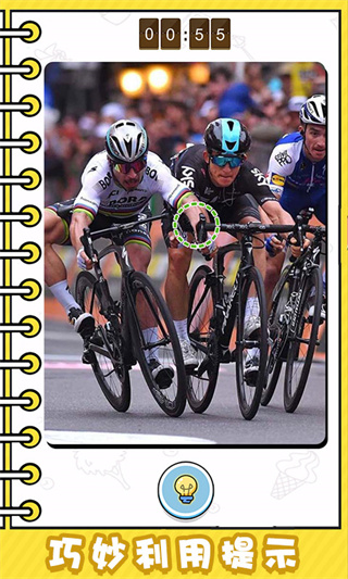 刚开始的图片还比较简单是大家一眼能够发现的问题,但是随着关卡进度不正常之处会越来越隐蔽。游戏采用渐进式难度设计,让玩家能够逐步适应并提升观察能力。又随着找寻时间不断减少也会持续带给玩家闯关失败的压力,所以就很容易出现找不到问题这一情况。计时系统增加了游戏的紧张感和挑战性,考验玩家在压力下的表现。这种情况玩家就可以页面下方中间的小灯泡图标,点击并申请提示可以帮助玩家快速找到问题。提示系统设计人性化,既不会让游戏变得太简单,又能在关键时刻给予玩家必要的帮助。