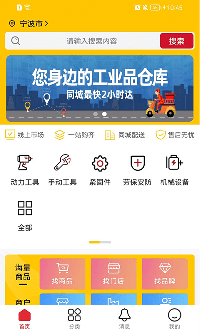 工货牛手机app是一款专注于工业品采购的智能平台应用。通过整合本地优质工业品门店资源,为用户提供品类丰富、品质可靠的工业品采购解决方案。平台采用线上线下融合模式,实现从搜索、下单到配送的一站式服务,特别推出同城闪电配送服务,最快2小时即可送达。无论是个人DIY爱好者还是企业采购专员,都能在这里找到所需的各种工业用品,享受便捷高效的采购体验。
